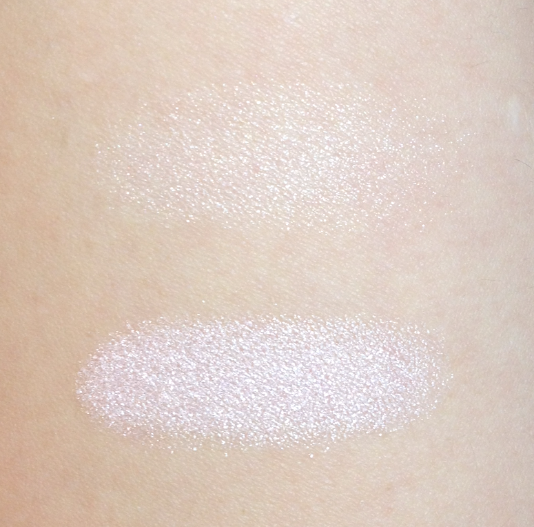 The texture is lovely - soft and dense, it can be applied quite opaquely if you wish, or as a soft silvery pink haze with a soft brush. It works well for highlighting anything, be it the inner corner of the eye, on the cheekbone, the collarbones.